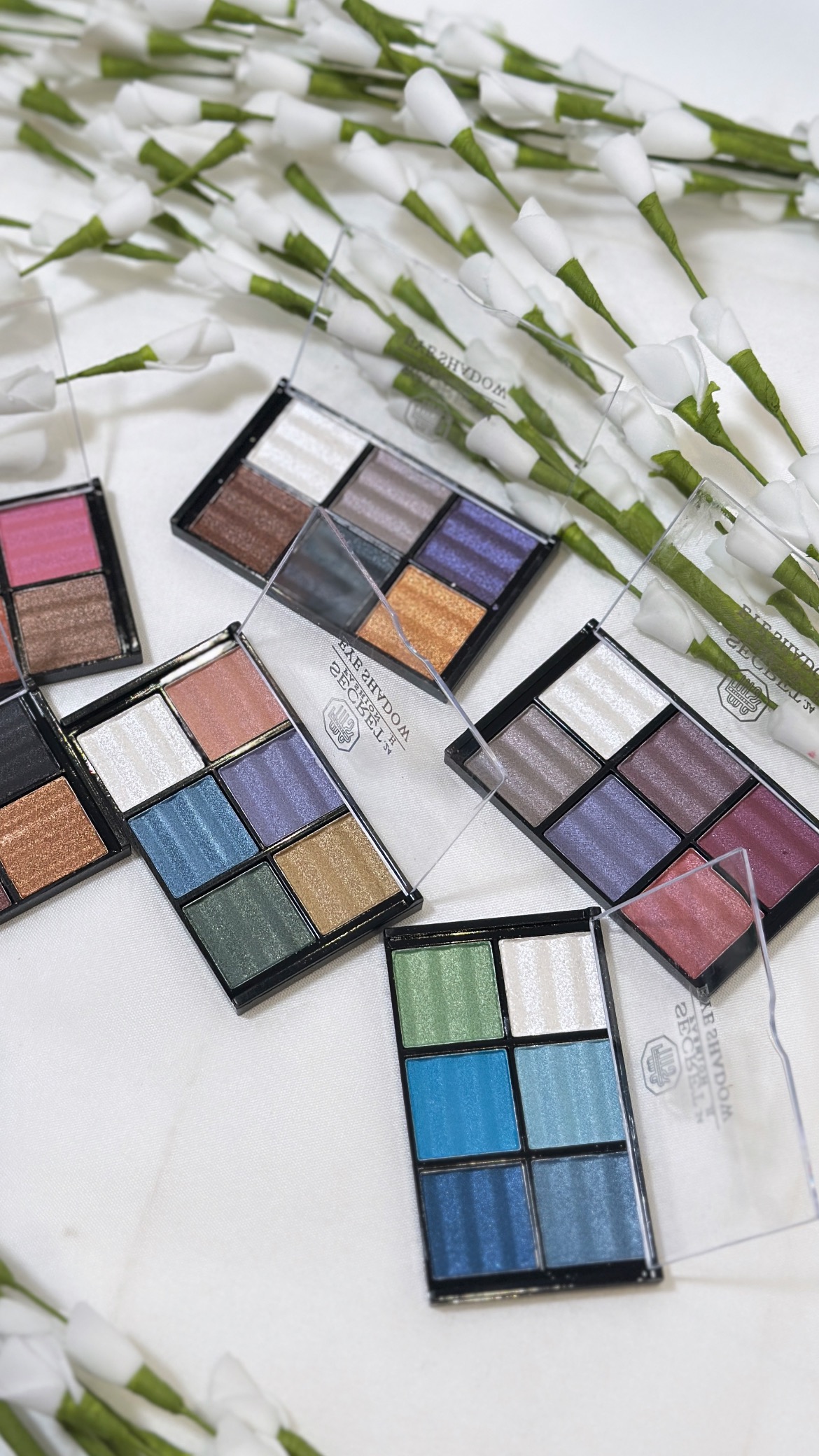 - 6 باليتات آيشادو صغيرة للعيون، كل باليت يحتوي على 6 درجات متنوعة
